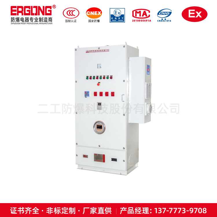 采用介质隔离点燃源的防爆措施。即:把用户所用的电器元件安装在一个充满正压洁净气体的柜体内,使外部环境中易燃易爆的混合性气体无法接触到电器元件在正常工作时所产生的电火花或危险温度,从而达到电器防爆的目的。